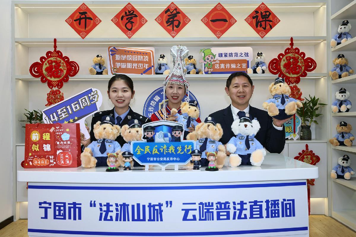 2月28日,安徽省寧國(guó)市公安、司法、教體局聯(lián)合開(kāi)展網(wǎng)絡(luò)直播“開(kāi)學(xué)第一課”活動(dòng),反詐中心民警、畬族鄉(xiāng)“法律明白人”及公益律師圍繞反詐、防欺凌等內(nèi)容進(jìn)行宣傳。