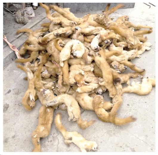 圖② 近日,河北省唐山市玉田縣公安局偵破李某某等人涉嫌非法狩獵和掩飾、隱瞞犯罪所得、犯罪所得收益案。犯罪嫌疑人在禁獵區(qū)使用禁用工具鐵夾子,非法狩獵黃鼠狼100多只?! ?本報記者 周宵鵬 攝