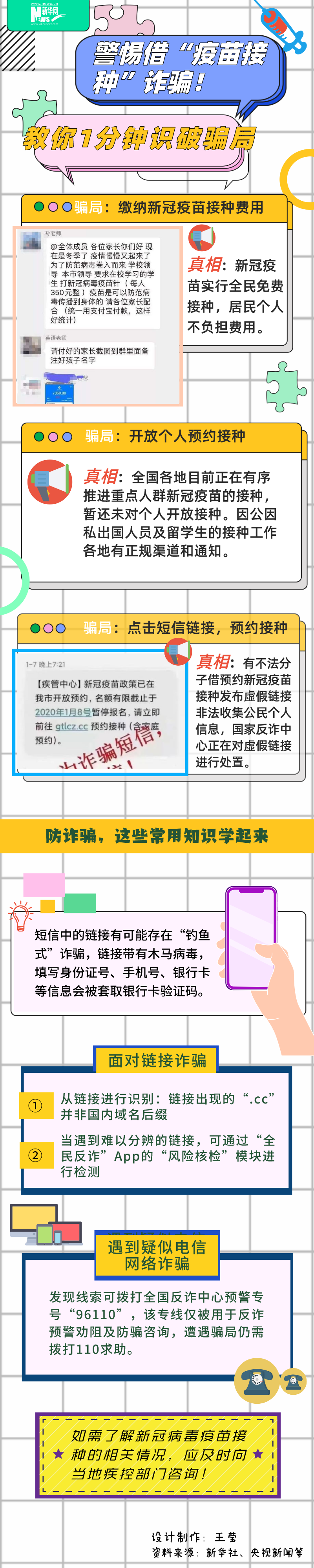 近期,全國多地有序開展新冠病毒疫苗接種,一些不法分子從中嗅到了“機會”,借疫苗接種設(shè)局實施詐騙,快來識破這些騙局!