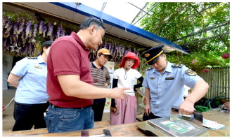 進(jìn)入5月,北京市著名的櫻桃產(chǎn)區(qū)——通州區(qū)西集鎮(zhèn)的萬(wàn)畝櫻桃即將成熟。近日,通州區(qū)市場(chǎng)監(jiān)督管理局和通州區(qū)計(jì)量檢測(cè)所的工作人員走進(jìn)櫻桃種植戶中間,為他們使用的電子秤提供集中上門檢定服務(wù),以精準(zhǔn)計(jì)量守護(hù)消費(fèi)者合法權(quán)益,護(hù)航特色農(nóng)業(yè)高質(zhì)量發(fā)展。圖為工作人員向種植戶發(fā)放宣傳頁(yè),提示大家誠(chéng)信經(jīng)營(yíng),杜絕電子秤作弊行為。
