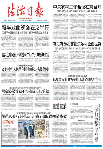 近日,我國第一部關(guān)于行政執(zhí)法監(jiān)督制度的國家層面專門立法——《行政執(zhí)法監(jiān)督條例》(以下簡稱《條例》)公布,自2026年2月1日起施行,標(biāo)志著具有中國特色的行政執(zhí)法監(jiān)督進(jìn)入全面法治化的新發(fā)展階段。