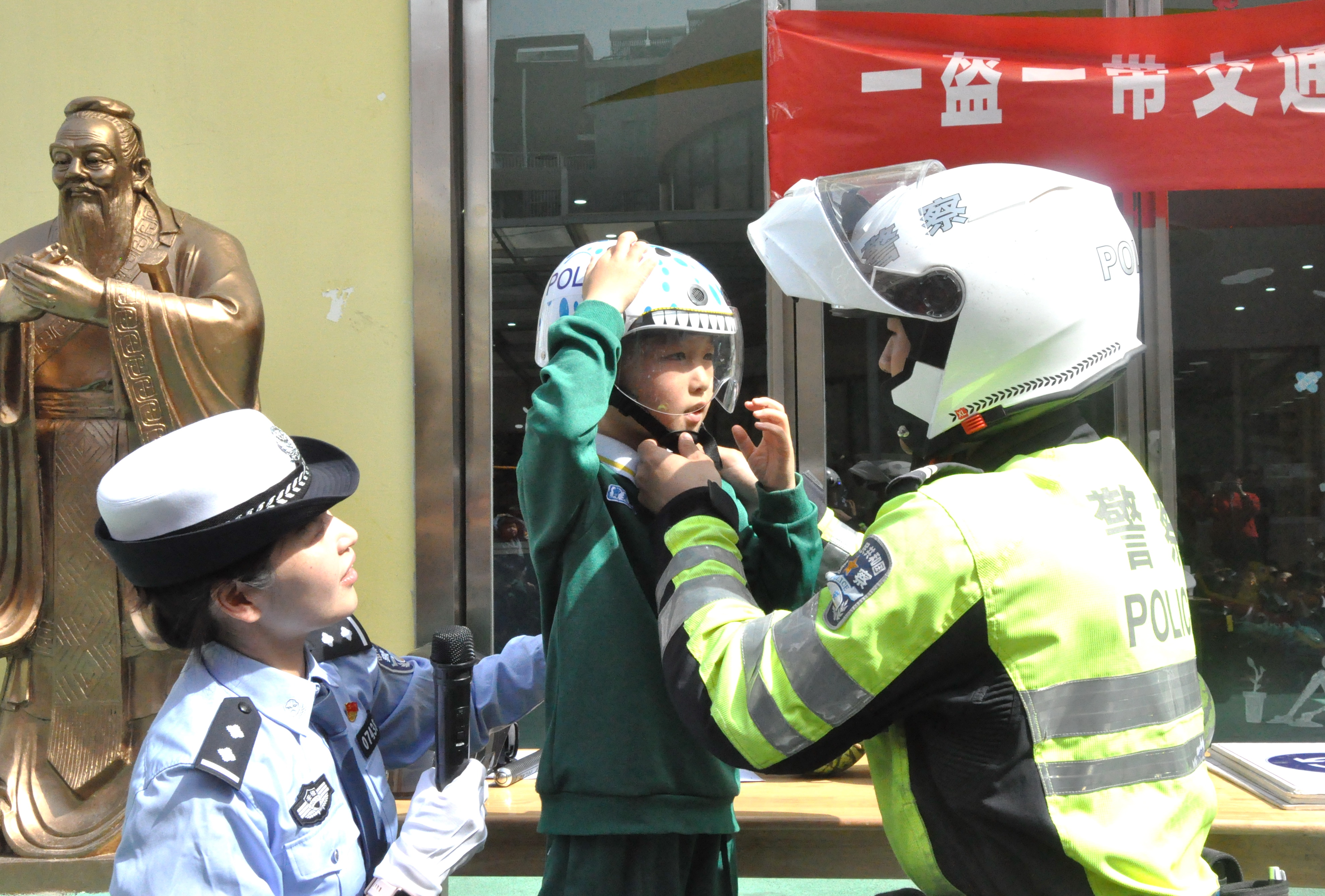 5月6日,安徽省含山縣公安局交警大隊民警深入轄區(qū)幼兒園,組織開展“一盔一帶”交通安全宣傳進校園活動。民警結(jié)合幼兒實際,通過實物對比、現(xiàn)場體驗、互動問答等形式,向小朋友們宣講出行安全基本常識以及駕乘電動車不佩戴安全頭盔、乘坐汽車不系安全帶存在的安全隱患及危害性。圖為民警現(xiàn)場教小朋友如何正確佩戴安全頭盔。