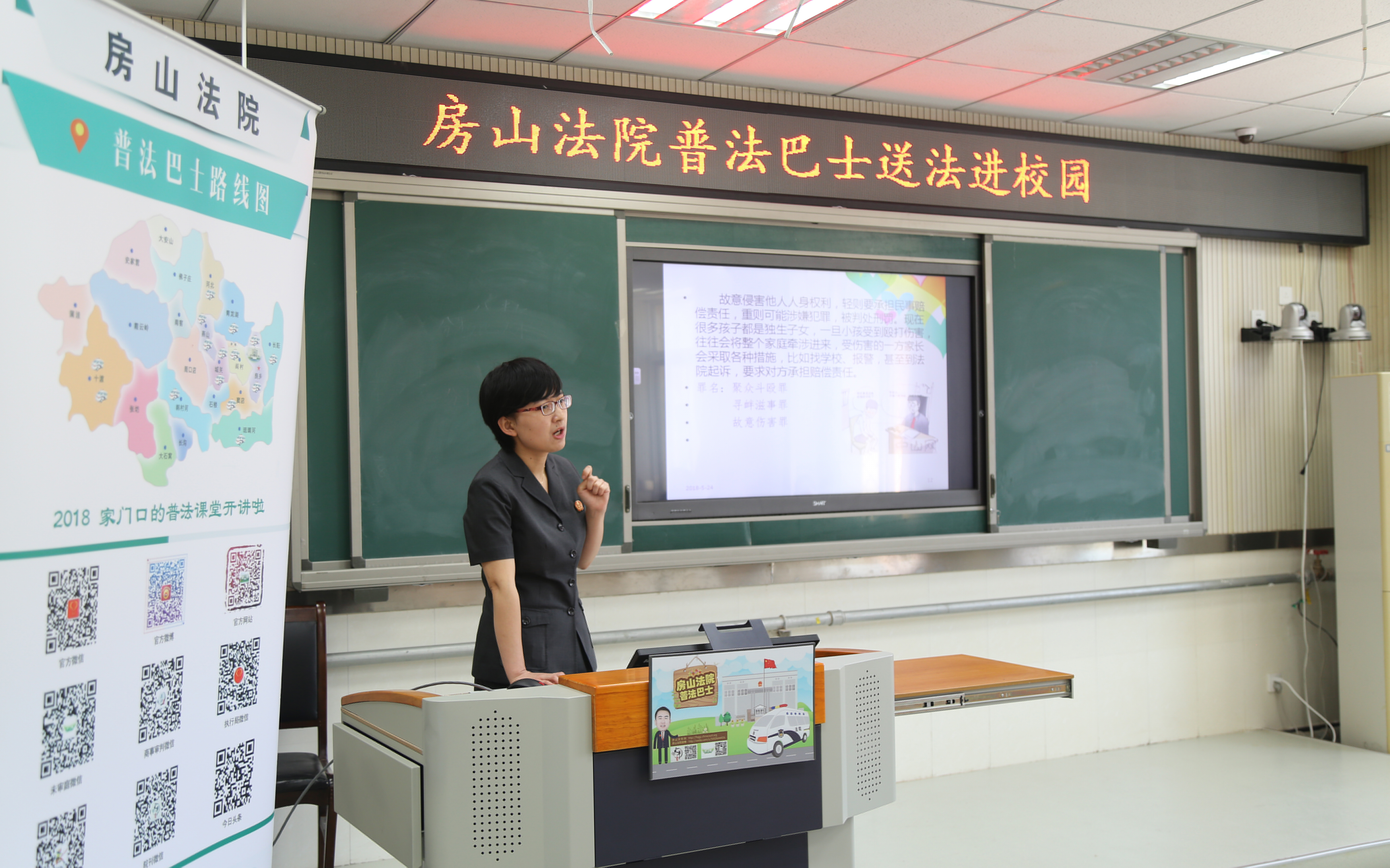 “法治校本課”將法治教育作為一門課程納入學(xué)校教學(xué)計(jì)劃,分配固定課時(shí),由教師及法官科學(xué)安排教學(xué)資源,有序授課,并逐步構(gòu)建起“三講兩課兩教一庭一實(shí)踐”的普法教育體系。自2012年12月以來(lái),房山區(qū)法院先后與房山昊天學(xué)校、京蓼學(xué)校、博識(shí)學(xué)校等校達(dá)成共建“法治校本課”協(xié)議。自該課程設(shè)立至今,昊天學(xué)校在第二屆、第三屆北京市中小學(xué)生模擬法庭大賽榮獲一、二等獎(jiǎng),多年被北京市教委評(píng)為全市法治示范學(xué)校。我院干警與昊天學(xué)校教師聯(lián)合編寫的《校本課程:普法面面觀》榮獲國(guó)家級(jí)“十三五”規(guī)劃課題“培育學(xué)生核心素養(yǎng)研究與實(shí)驗(yàn)”優(yōu)秀成果一等獎(jiǎng),“法治校本課”項(xiàng)目被評(píng)為“北京市法院未成年人權(quán)益保護(hù)制度十大創(chuàng)新事例”。更讓人感動(dòng)的是,有多名參與“法治校本課”的學(xué)生,在學(xué)習(xí)過(guò)程中對(duì)法律產(chǎn)生了濃厚興趣,最后報(bào)考法律類院校,成為法律職業(yè)者。