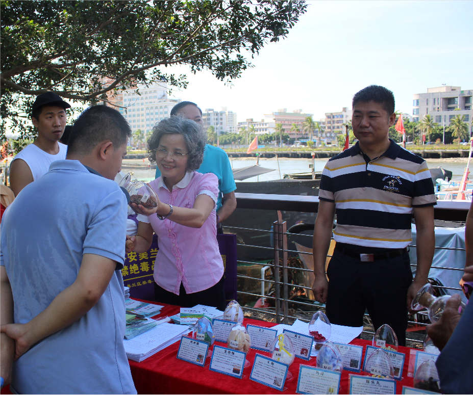 值“6·26”國際禁毒日到來之際,海南省??谑忻捞m區(qū)海甸街道海岸線驛站開展“護航自貿(mào)港—禁毒在行動暨慶祝建黨100周年”為主題的全民禁毒宣傳。圖為6月20日,工作人員為漁民介紹毒品的危害。
