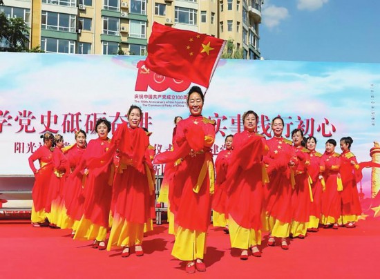 建黨百年,老百姓也迎來(lái)了高興的節(jié)日,大家歡喜雀躍,愛(ài)黨之情溢于言表。圖為長(zhǎng)春市陽(yáng)光社區(qū)開(kāi)展的慶祝建黨百年活動(dòng)。(記者吳茗 攝)
