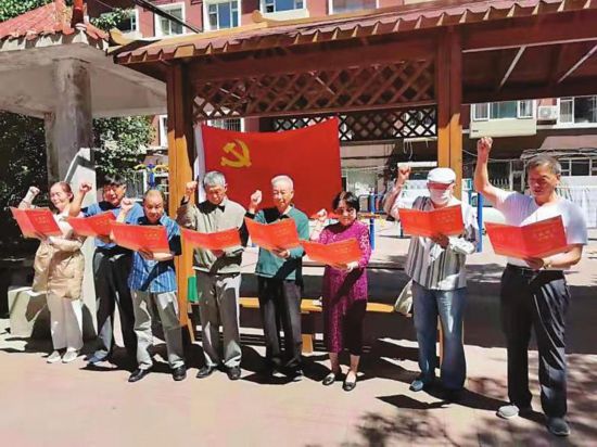 建黨百年之際,東北師范大學(xué)環(huán)境學(xué)院的離退休老黨員開(kāi)展重溫黨的誓言活動(dòng)。(記者吳茗 攝)