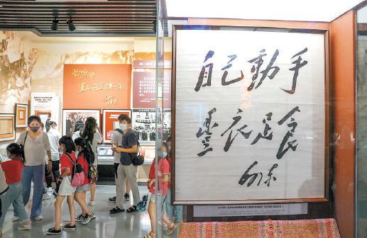 展覽還運用不同手段對亮點文物進行了重點設(shè)計和突出展示。比如,展廳選取了毛澤東起草發(fā)布的《對日戰(zhàn)爭宣言》《論持久戰(zhàn)》《共產(chǎn)黨人》以及中共中央發(fā)表的紀念抗戰(zhàn)周年宣言與口號等在黨史上具有重要影響的部分重要文獻,以電子書、知識問答、動畫演示等電子屏形式進行了展示。