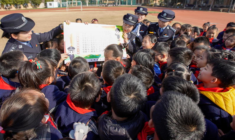 12月21日,南京鐵路公安處南京站派出所聯(lián)合南京鐵路公安處特警支隊及南京東站派出所走進(jìn)南京一中江北新區(qū)分校,開展“安全宣傳進(jìn)校園 寓教于樂話平安”活動,通過講故事、看演練、寫書法、學(xué)折紙等方式寓教于樂,向?qū)W生宣傳反恐防暴知識及鐵路安全防范知識,提高學(xué)生安全意識。圖為民警帶領(lǐng)學(xué)生共同學(xué)習(xí)鐵路及校園安全知識。