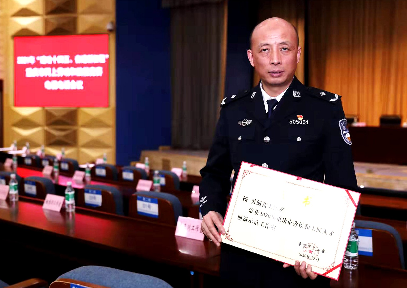 圖① 楊勇展示“楊勇創(chuàng)新工作室”獲獎(jiǎng)證書。