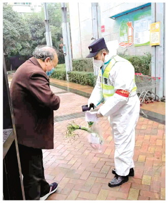 勞動(dòng)二社區(qū)是大型國(guó)有企業(yè)西電公司的老家屬院,沒(méi)有電梯,老年人、殘疾人比較多,上下樓不方便。社區(qū)和物業(yè)防護(hù)器材都很缺乏,民警劉華侃利用防護(hù)裝備齊全的優(yōu)勢(shì),擔(dān)任了義務(wù)送菜員,給下樓不方便的老人義務(wù)送菜。