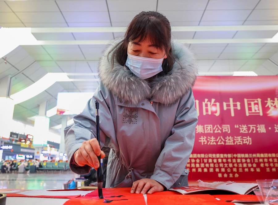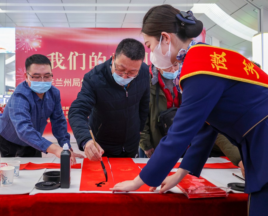 為實現(xiàn)“平安春運、有序春運、溫馨春運,讓旅客體驗更美好”的春運目標,1月25日蘭州鐵路局在蘭州火車站、蘭州西站開展了以“我們的中國夢”為主題的“送萬?!みM萬家”書法公益活動?;顒赢斕?,甘肅省的20余名書法家、藝術家筆走龍蛇、揮毫潑墨,現(xiàn)場創(chuàng)作春聯(lián)和“?!弊?,為候車旅客送上新春的祝福。