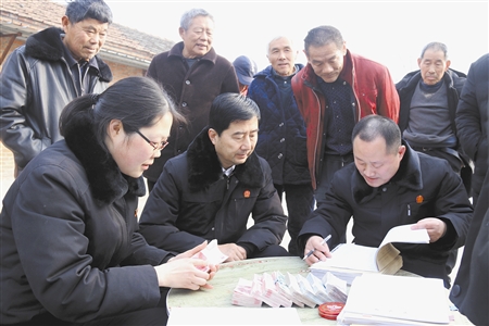 “多虧法庭幫忙,這么快就拿回土地租金,今年可以安心過大年嘍!”村民薛元林從法官手中接過4800元土地租賃費(fèi),抑制不住心中的喜悅。1月25日,安徽省固鎮(zhèn)縣人民法院楊廟人民法庭法官來到湖溝鎮(zhèn)姚集村,集中為43家農(nóng)戶發(fā)放土地租賃費(fèi)。
