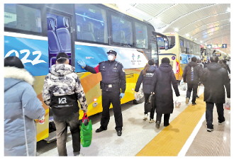 乘客大多都是國外友人,主要包括技術官員和媒體記者。冬奧列車運輸開始后,每天上下午都有一個運輸高峰期。不少國外友人提著大包小包上下車,趕往賽場或駐地。在這期間,張雄要做好接車工作,確保乘客安全進出站。同時要應對突發(fā)情況,“國外友人對列車的認知和我們不一樣,他們不太理解我們?yōu)槭裁匆崆?分鐘停止檢票。因此,我們要配合客運部門做好解釋工作。”張雄說,此外,還有粗心落包的旅客,民警們要快速找到失主并將包送上車。