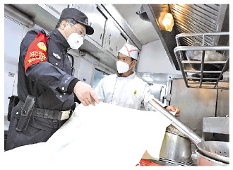 圖為張朝華對列車餐車的消防設(shè)備進行檢查。 通訊員 茍國力 攝