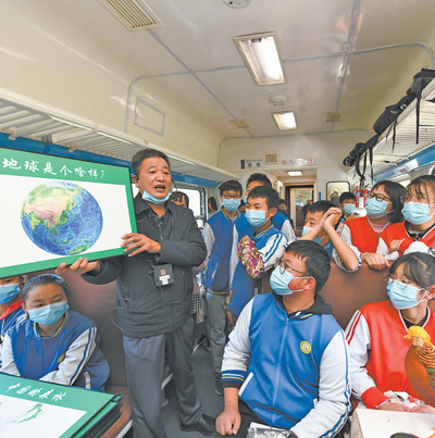 在由四川廣元開(kāi)往陜西寶雞的6064次“秦嶺小慢車(chē)”上,一名教師在為沿線通勤的學(xué)生們公益授課。唐振江攝(影像中國(guó))