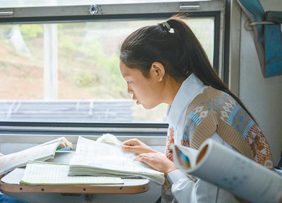 一名學(xué)生在乘坐成昆鐵路5633次列車(chē)途中復(fù)習(xí)功課。新華社記者 沈伯韓攝