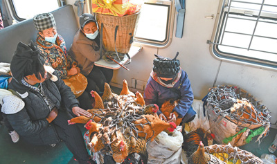 一列火車(chē)從四川普雄開(kāi)往攀枝花,沿線??繒r(shí),附近村民將家禽等農(nóng)副產(chǎn)品帶上車(chē),趕往縣城售賣(mài)。張浪攝(影像中國(guó))