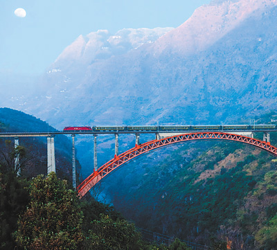 烏蒙山深處的北盤(pán)江大橋上,6081次公益慢火車(chē)駛過(guò)。葉傳增 楊永全攝影報(bào)道