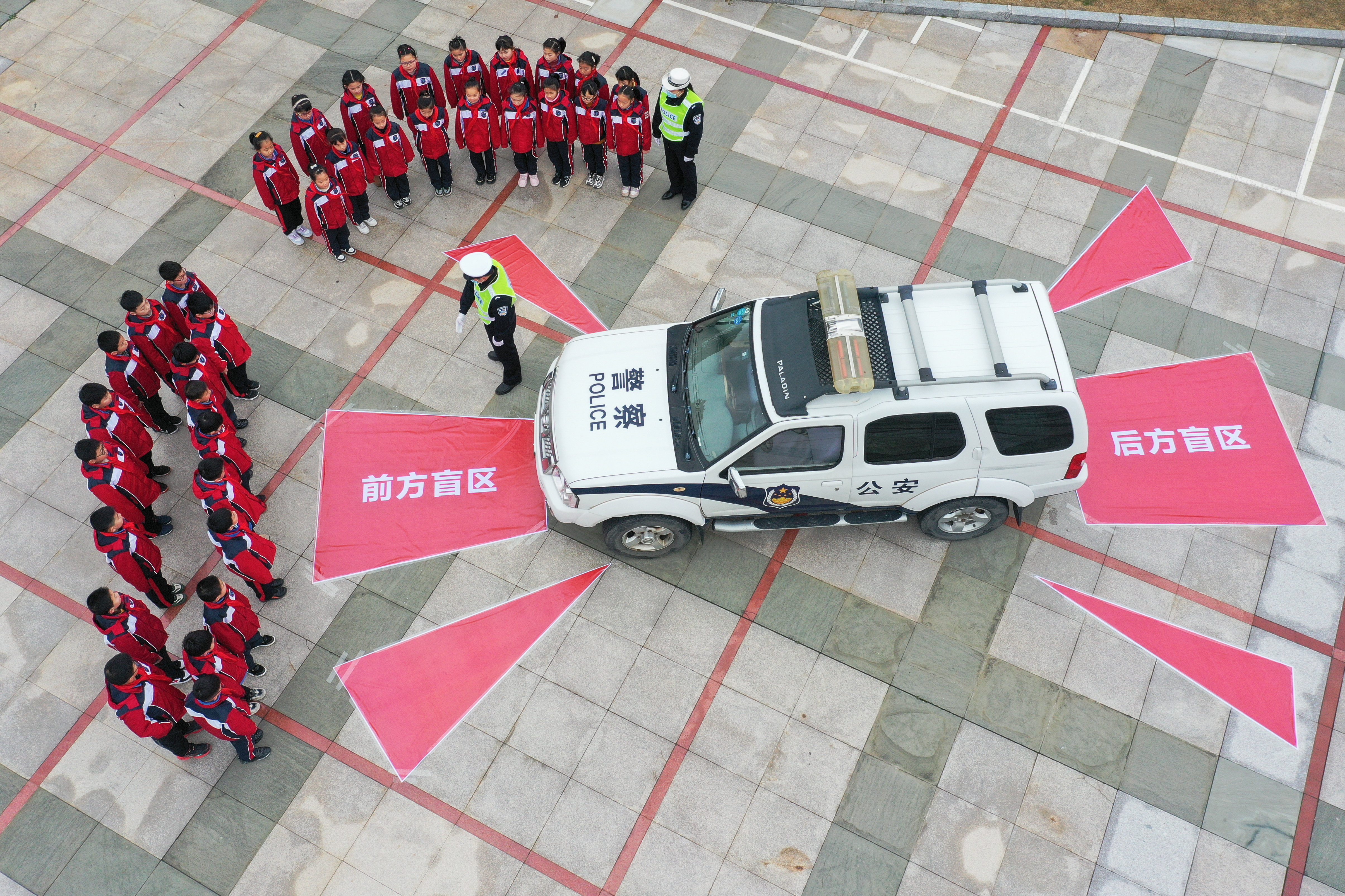 2月17日,浙江省舟山市岱山縣公安局交警大隊民警走進岱山縣實驗學(xué)校開展“安全第一課 一起向未來”交通安全教育進校園活動?;顒又?,民警向?qū)W生們講解了交通標(biāo)志、正確佩戴安全頭盔、車輛盲區(qū)等知識,并進行交通標(biāo)志知識互動競答。圖為民警向?qū)W生講解車輛盲區(qū)知識。