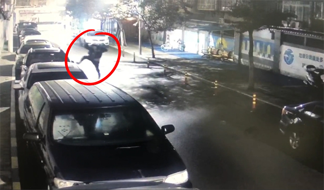 嫌疑人酒后飛踹路邊車輛。濟南警方供圖