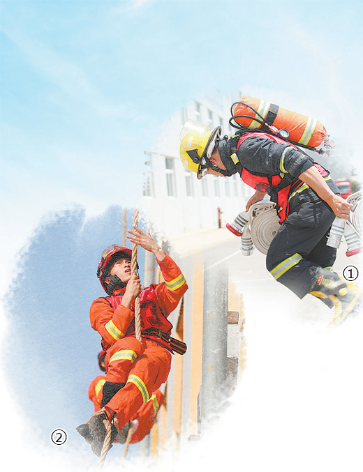 圖①、圖②為江蘇鹽城消防救援支隊(duì)西環(huán)路特勤站特勤隊(duì)員工作訓(xùn)練場(chǎng)景。胡萬春 曹兆龍攝影報(bào)道