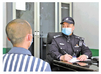 圖為劉國(guó)華與罪犯?jìng)€(gè)別談話。