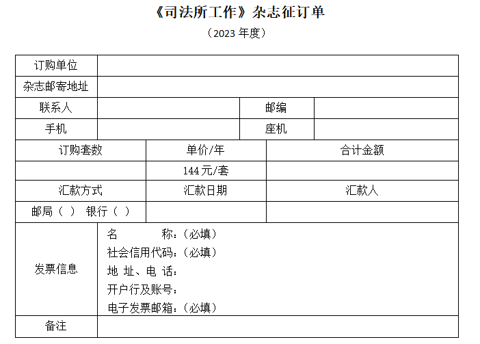若不能進(jìn)行在線提交訂單,請將本征訂單填寫完整后與匯款憑證一并發(fā)郵件至sfsgzfxb@126.com;或添加微信13681283507后發(fā)送電子版征訂單與匯款憑證。