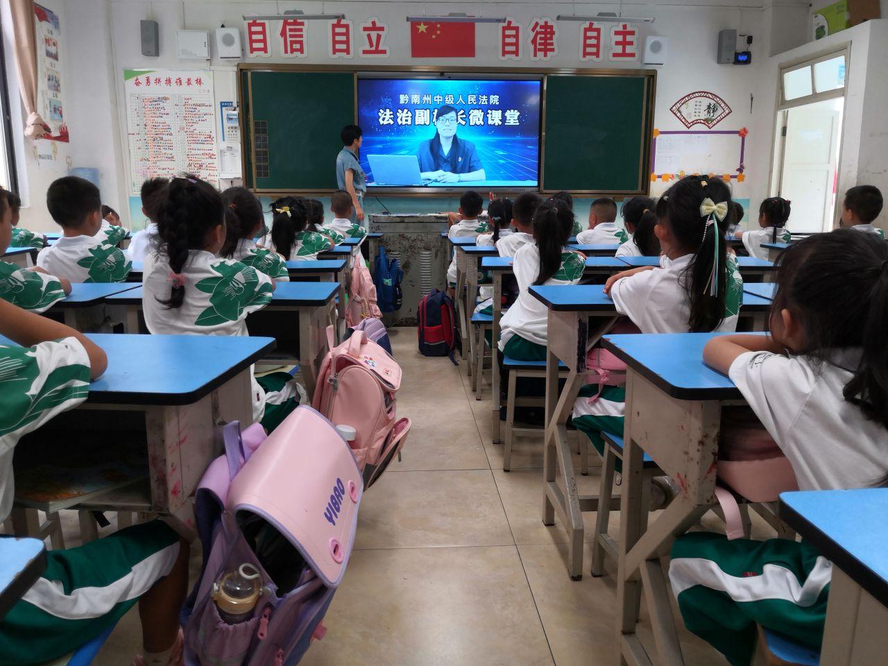 不僅如此,為了進(jìn)一步增強(qiáng)學(xué)生的法律意識,深化開展法治宣傳教育,引導(dǎo)學(xué)生樹立社會主義法治觀念,助推平安校園建設(shè),都勻四小還邀請法治副校長金長虹錄制法治教育微講堂,利用班隊會時間為廣大師生播放,讓同學(xué)們做到尊法學(xué)法守法用法。