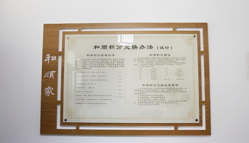 回龍壩鎮(zhèn)聚龍城社區(qū)“和順茶館”營業(yè)至今,共收到民情民意800余條,解決群眾身邊事480件,舉辦百姓議事會(huì)50場(chǎng),切實(shí)踐行了聽民聲、知民心、解民困。同時(shí),在茶館的“和順家”還開設(shè)了一個(gè)積分兌換超市,設(shè)計(jì)專用于基層治理積分兌換的“和順券”,群眾每參與一次義務(wù)勞動(dòng),可積20分;協(xié)助解決一項(xiàng)調(diào)解任務(wù),可積20分;幫扶一名貧困戶或困難家庭,可積20分……“我真沒想到,這次能兌換這么多獎(jiǎng)品,這些都是生活必需品,不用花錢買了……”居民胡代珍拿著一大包生活用品,笑呵呵地說,這是她積極參與社區(qū)公益活動(dòng)獲得的積分兌換的。