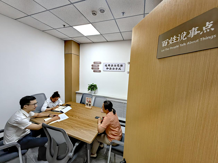 8月24日,在烏魯木齊市沙依巴克區(qū)“天山楓橋”綜合法務(wù)區(qū)“百姓說事點(diǎn)”,工作人員正在記錄轄區(qū)群眾反映的困難訴求及意見建議。法治日報全媒體記者 潘從武 攝