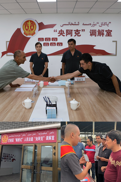 巴格其人民法庭在堅(jiān)持和發(fā)展新時(shí)代楓橋經(jīng)驗(yàn)的基礎(chǔ)上,打造了“楓橋式”調(diào)解室——“央阿克”調(diào)解室。法庭多批次組織具有法律專業(yè)知識(shí)、工作能力強(qiáng)、經(jīng)驗(yàn)豐富的調(diào)解員到轄區(qū)核桃交易市場(chǎng),現(xiàn)場(chǎng)解決市場(chǎng)內(nèi)發(fā)生的矛盾糾紛并開展普法宣傳。近日,“近觀楓橋”網(wǎng)絡(luò)主題宣傳活動(dòng)新疆采訪團(tuán)來到和田縣“央阿克調(diào)解室”,實(shí)地探索特色“小法庭”守護(hù)果農(nóng)“大民生”的治理密碼。