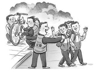 “這張照片是小孩考差了在那里哭,我們的義警看見(jiàn)以后,就默默地陪著她走回家;這張是義警舉報(bào)這個(gè)藥店出售右美沙芬,我們聯(lián)合藥監(jiān)過(guò)去查處;這張是學(xué)生自行車(chē)鏈條壞了,本就擅長(zhǎng)修車(chē)的義警跑過(guò)去,三下五除二就幫他修好了……”鄒吳勇指著這些照片如數(shù)家珍,笑稱(chēng)義警隊(duì)伍里藏龍臥虎。