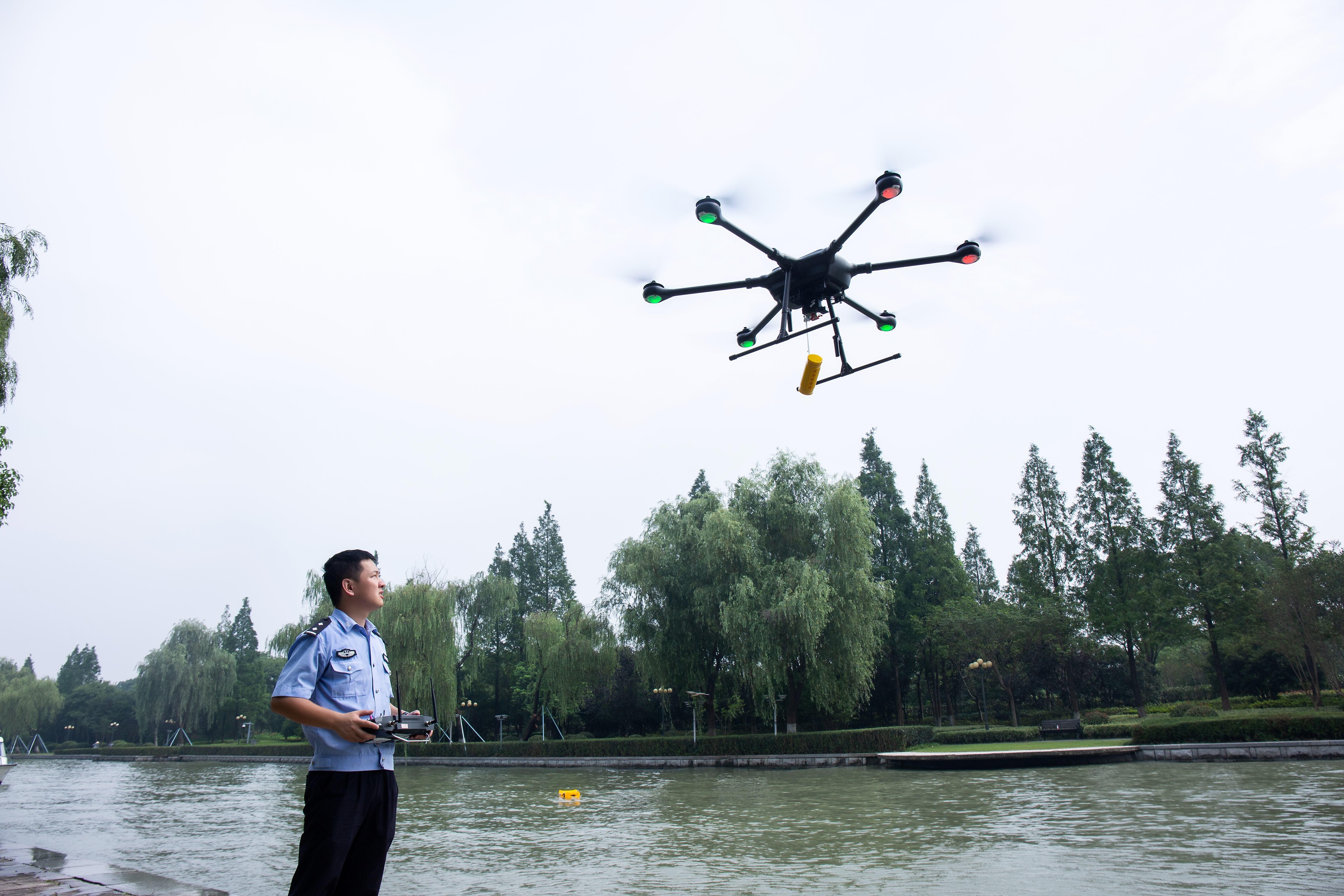 “過去無人機主要用于航拍,隨著通信技術(shù)發(fā)展加快,無人機應(yīng)用的領(lǐng)域越來越廣泛,特別是在我們警務(wù)領(lǐng)域,無人機有大作用?!碧平芊舱f。