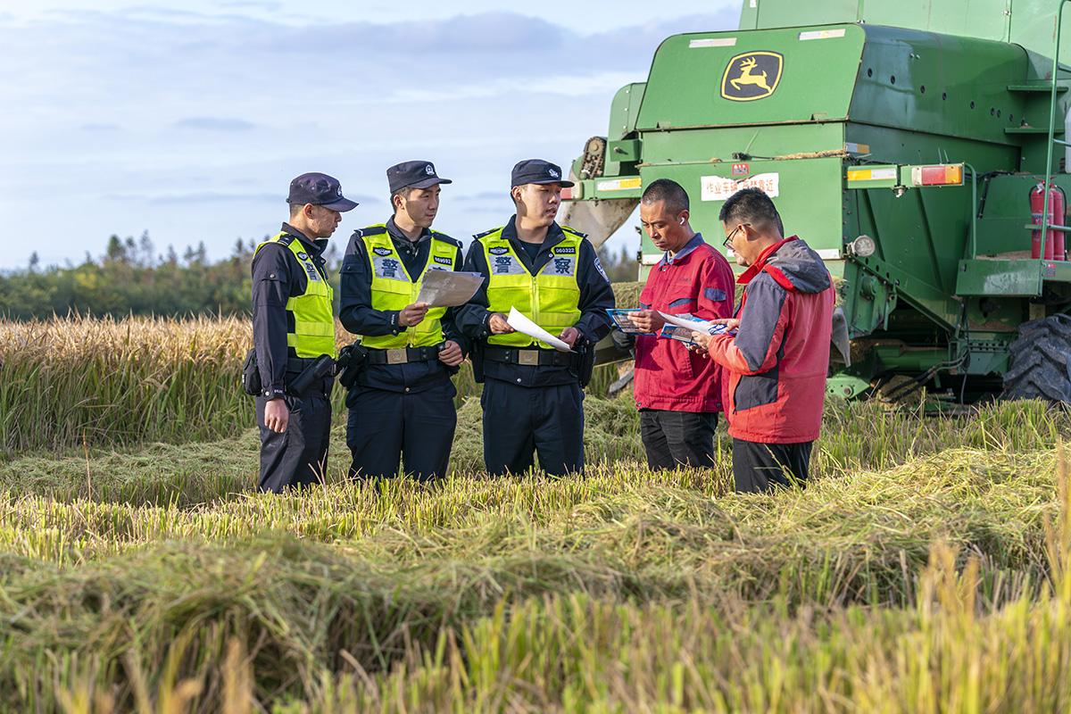 11月11日,上海市公安局崇明分局長(zhǎng)江派出所組織民警走進(jìn)田間地頭,向收割晚稻的農(nóng)戶(hù)們開(kāi)展防盜防騙、交通安全提示等宣防工作。