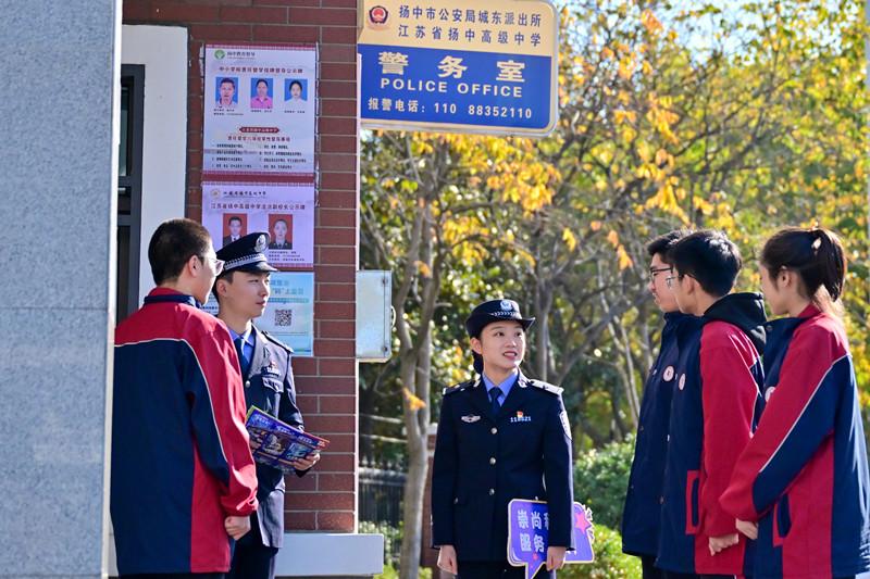 江蘇省揚(yáng)中市公安局“青葵先鋒隊(duì)”近日走進(jìn)揚(yáng)中高級(jí)中學(xué),以“知識(shí)改變命運(yùn),科技守護(hù)家國(guó)”為主題,向?qū)W生開展校園法治宣傳。