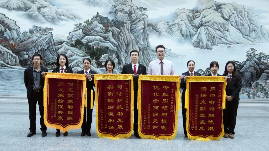 他們此行的目的很簡(jiǎn)單——送錦旗。為了向挽救企業(yè)于水火之中、勞心勞力晝夜奮戰(zhàn)的法官們表示感謝,是他們一攬子調(diào)解了包含潛在的4000余起涉央視著作權(quán)糾紛,標(biāo)的額達(dá)數(shù)千萬(wàn)元。