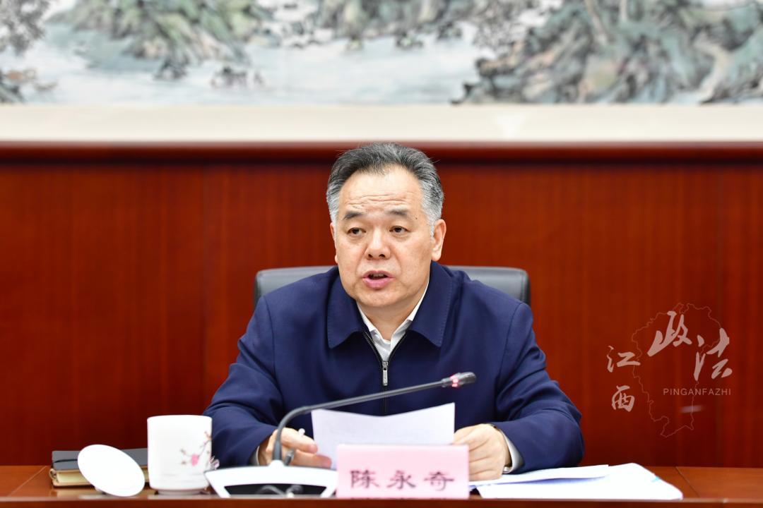 近日,江西省委政法委領(lǐng)導(dǎo)班子樹立和踐行正確政績觀學(xué)習(xí)教育讀書班暨理論學(xué)習(xí)中心組(擴(kuò)大)集體學(xué)習(xí)研討在南昌舉行。省委副書記、省委政法委書記陳永奇作開班輔導(dǎo)并總結(jié)講話。他強(qiáng)調(diào),要深入學(xué)習(xí)貫徹習(xí)近平總書記關(guān)于樹立和踐行正確政績觀的重要論述,全面落實(shí)“立黨為公、為民造福、科學(xué)決策、真抓實(shí)干”的總要求,高標(biāo)準(zhǔn)高質(zhì)量完成學(xué)習(xí)教育各項(xiàng)任務(wù),以勇?lián)?dāng)、抓落實(shí)的實(shí)績實(shí)效推動(dòng)全省政法工作高質(zhì)量發(fā)展。