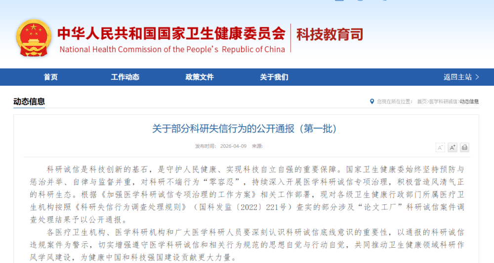 國家衛(wèi)健委通報(bào)10起科研失信行為