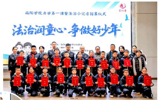 這是一堂特殊的“開學第一課”,也是浙江省桐鄉(xiāng)市公安局舉辦的“法治潤童心 爭做好少年”主題活動現(xiàn)場。當天,尚陽學校首批20名法治小記者正式受聘上崗,佩戴專屬徽章,接過鮮紅的聘書,從此多了一重光榮的身份——法治精神的校園傳播者。