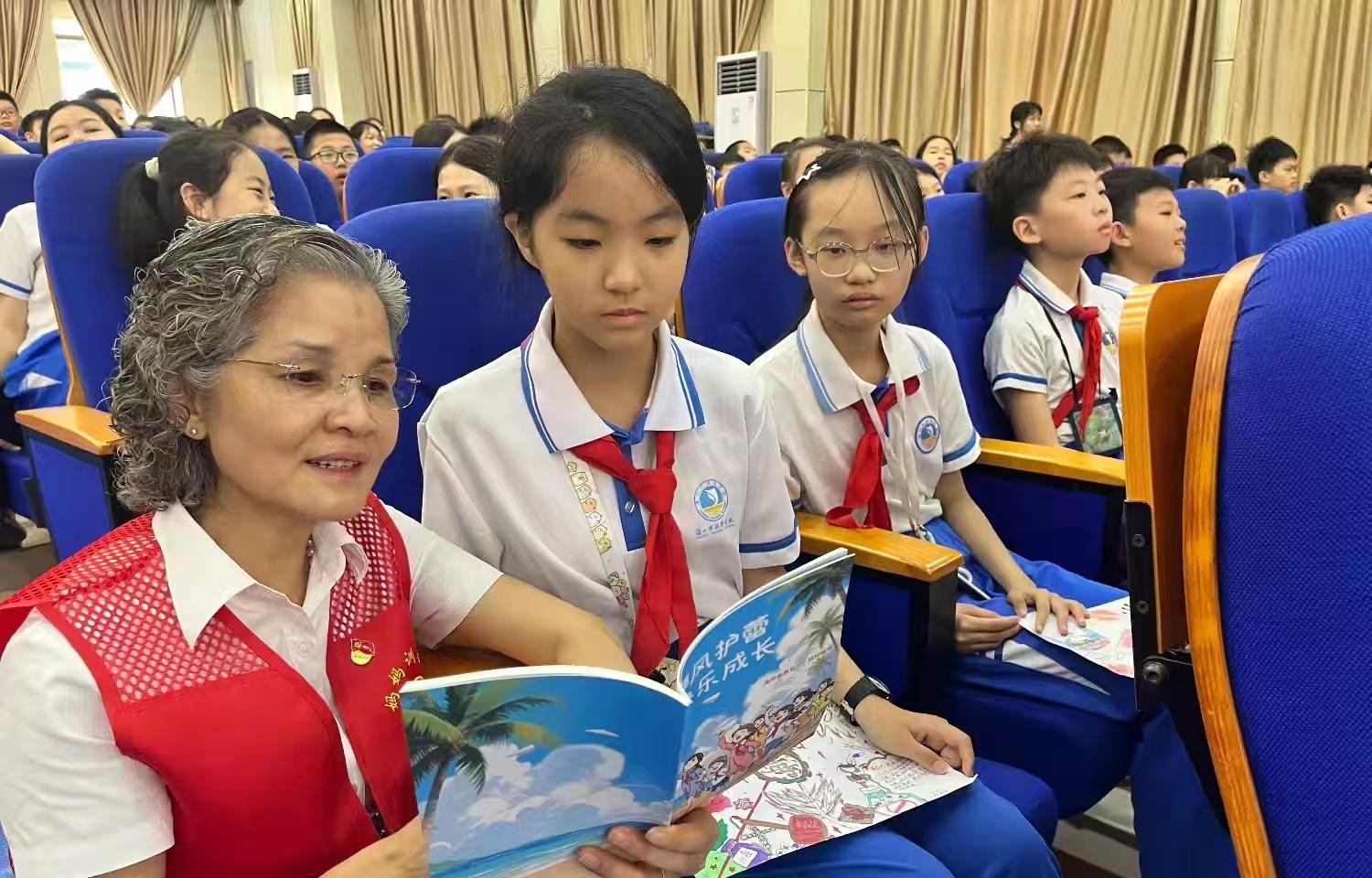 “媽媽訓(xùn)教團(tuán)”志愿者服務(wù)隊(duì)隊(duì)員謝盛東、李春燕、鄭愛琳、路婭莉、陳愛珍、彭紅威、楊桂云、符文寶、謝振榮、晏桂芬,??谑泄簿置捞m分局紅島海岸派出所民警,以及學(xué)校400名師生共同參與活動(dòng)。