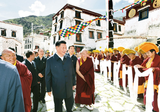 2021年7月21日至23日,中共中央總書記、國(guó)家主席、中央軍委主席習(xí)近平來到西藏,祝賀西藏和平解放70周年,看望慰問西藏各族干部群眾。這是22日下午,習(xí)近平在位于拉薩西郊的哲蚌寺考察。 新華社記者 謝環(huán)馳/攝