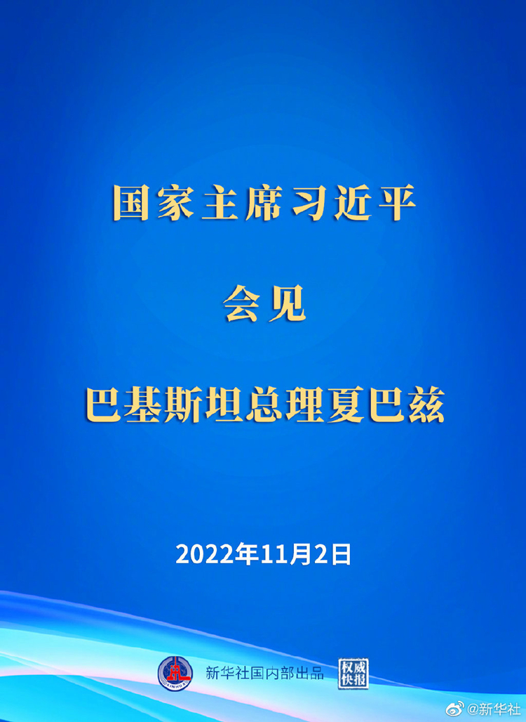 國(guó)家主席習(xí)近平11月2日上午在人民大會(huì)堂會(huì)見來華進(jìn)行正式訪問的巴基斯坦總理夏巴茲。