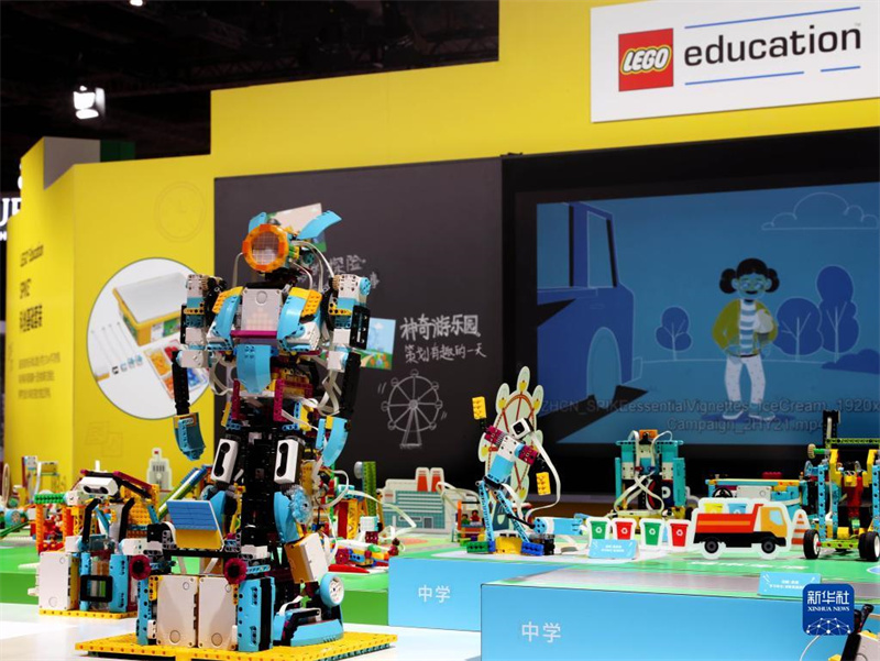 第四屆中國國際進(jìn)口博覽會樂高展臺(2021年11月5日攝)。新華社記者 劉穎 攝