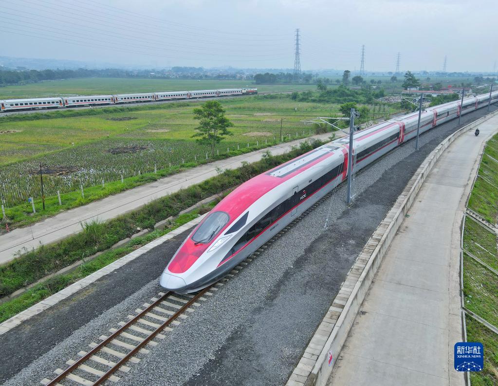 11月9日,印尼萬(wàn)隆德卡魯爾車站。一輛帶有寶石紅涂色的高鐵列車緩緩啟動(dòng),標(biāo)志著雅萬(wàn)高鐵試驗(yàn)段接觸網(wǎng)熱滑試驗(yàn)全面展開(kāi)。雅萬(wàn)高鐵項(xiàng)目自2016年正式啟動(dòng)以來(lái),在兩國(guó)元首關(guān)心下順利推進(jìn),已成為共建“一帶一路”的標(biāo)志性項(xiàng)目。項(xiàng)目建成后,雅加達(dá)到萬(wàn)隆的旅行時(shí)間將由現(xiàn)在的3個(gè)多小時(shí)縮短至40分鐘。
