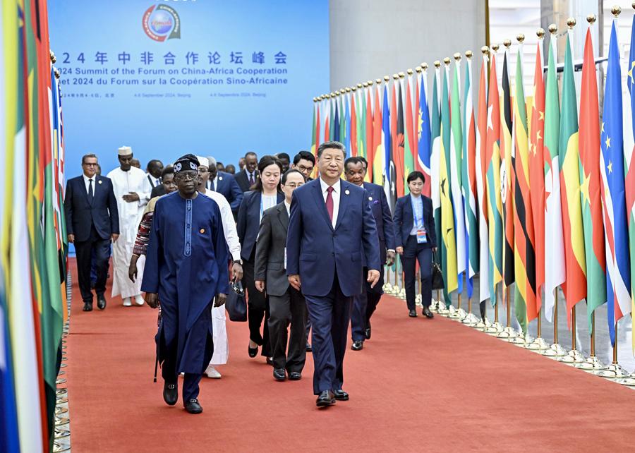新華社北京9月5日電(記者楊依軍、孫奕)9月5日上午,國家主席習近平在北京人民大會堂出席中非合作論壇北京峰會開幕式并發(fā)表主旨講話。習近平宣布,中國同所有非洲建交國的雙邊關(guān)系提升到戰(zhàn)略關(guān)系層面,中非關(guān)系整體定位提升至新時代全天候中非命運共同體,將實施中非攜手推進現(xiàn)代化十大伙伴行動。