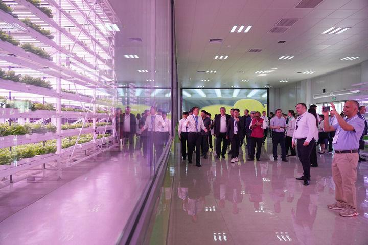 5月19日,上海合作組織減貧和可持續(xù)發(fā)展論壇與會(huì)人員在陜西楊凌智慧農(nóng)業(yè)示范園進(jìn)行實(shí)地考察。新華社記者 邵瑞 攝