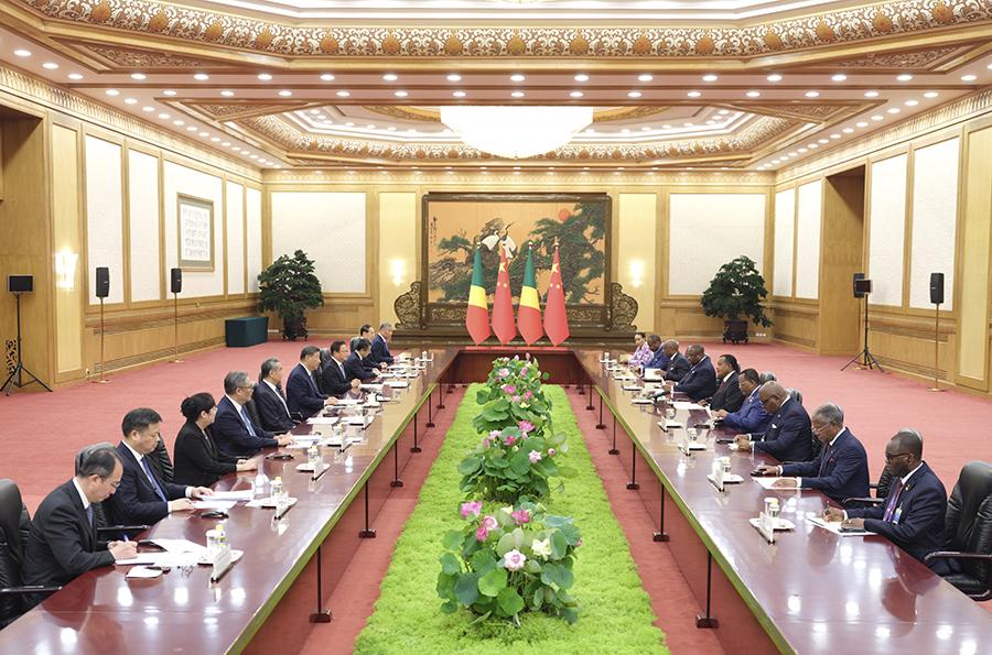 習(xí)近平強(qiáng)調(diào),剛果(布)擔(dān)任中非合作論壇非方共同主席國(guó)以來(lái),同中方一道積極推動(dòng)北京峰會(huì)成果落實(shí),取得可喜成績(jī)。中方愿同非方共同實(shí)施好“十大伙伴行動(dòng)”,打造綠色產(chǎn)業(yè)、電子商務(wù)和支付、科技、人工智能等新增長(zhǎng)點(diǎn),推動(dòng)中非合作提質(zhì)升級(jí)。當(dāng)前國(guó)際形勢(shì)變亂交織,中國(guó)和非洲作為全球南方重要成員,要肩負(fù)起捍衛(wèi)國(guó)際公平正義、維護(hù)世界和平、促進(jìn)共同發(fā)展的歷史責(zé)任,攜手推動(dòng)構(gòu)建人類(lèi)命運(yùn)共同體。