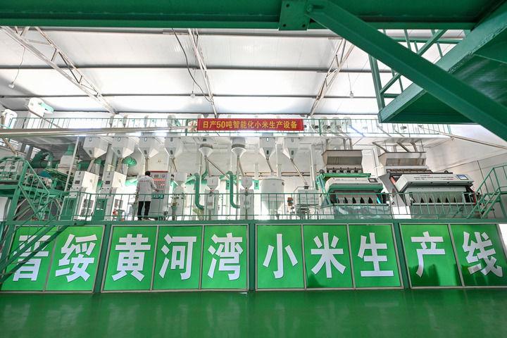2025年7月1日拍攝的山西省呂梁市興縣晉綏黃河灣農(nóng)業(yè)開發(fā)有限公司的小米生產(chǎn)線。抗戰(zhàn)時(shí)期,地處晉西北地區(qū)的興縣和靜樂縣是晉綏抗日根據(jù)地的一部分。新華社記者 李鑫 攝