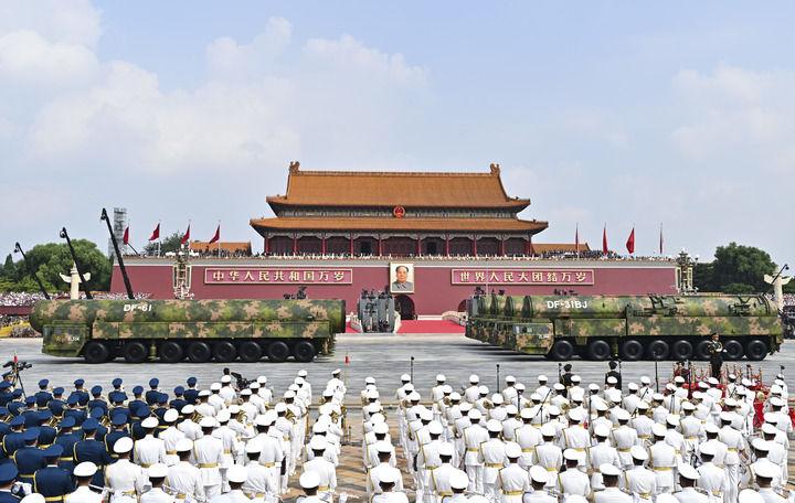 2025年9月3日,紀(jì)念中國人民抗日戰(zhàn)爭暨世界反法西斯戰(zhàn)爭勝利80周年大會在北京隆重舉行。這是核導(dǎo)彈第一方隊通過天安門廣場。新華社記者 李鑫 攝