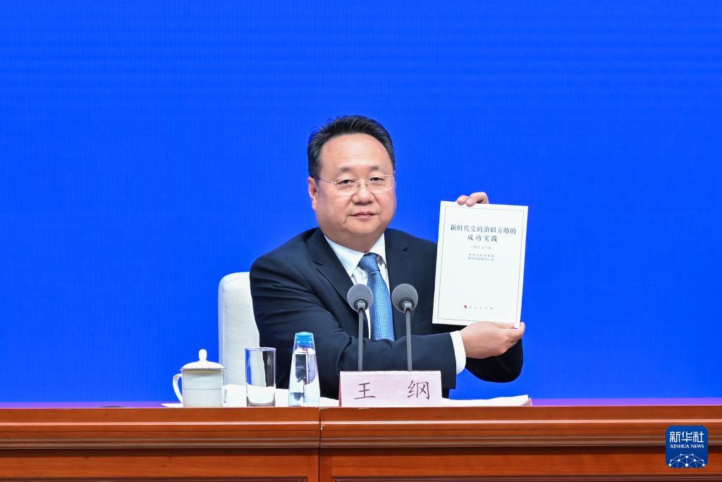 9月19日,國(guó)務(wù)院新聞辦公室在北京舉行新聞發(fā)布會(huì),發(fā)布《新時(shí)代黨的治疆方略的成功實(shí)踐》白皮書,中央宣傳部副部長(zhǎng)王綱,新疆維吾爾自治區(qū)黨委副書記、自治區(qū)主席艾爾肯·吐尼亞孜,新疆維吾爾自治區(qū)黨委常委、自治區(qū)常務(wù)副主席陳偉俊,新疆維吾爾自治區(qū)黨委常委、宣傳部部長(zhǎng)王建新出席,介紹白皮書有關(guān)情況并答記者問。這是王綱展示《新時(shí)代黨的治疆方略的成功實(shí)踐》白皮書。新華社記者 李鑫 攝